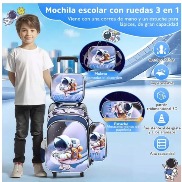 ست سه تکه کوله پشتی فضانورد چرخدار