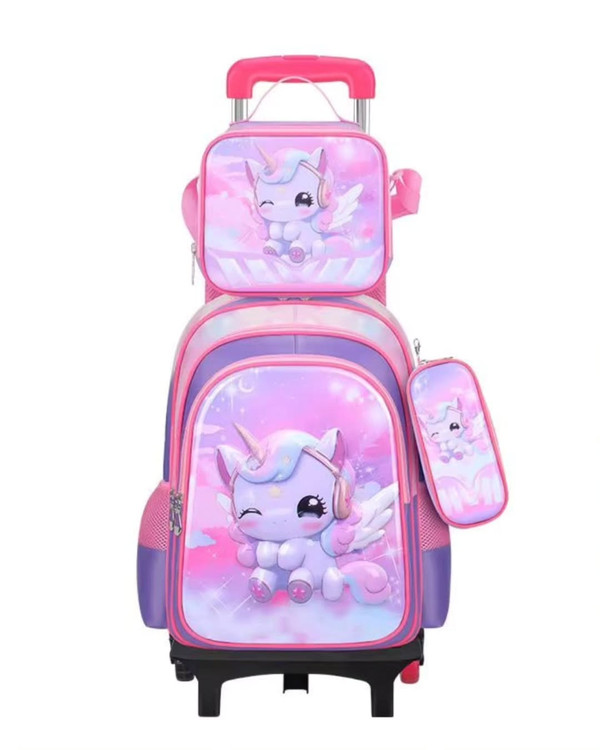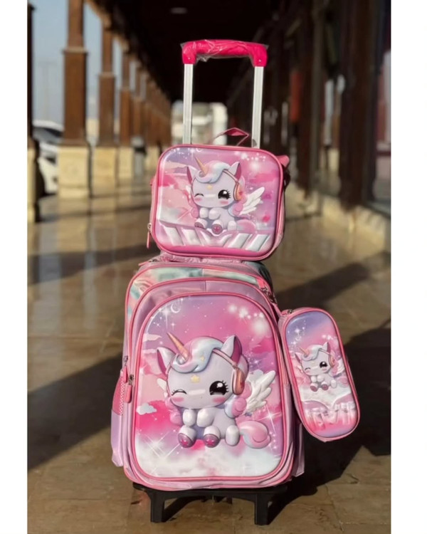کوله پشتی چرخدار مدرسه طرح پونی صورتی