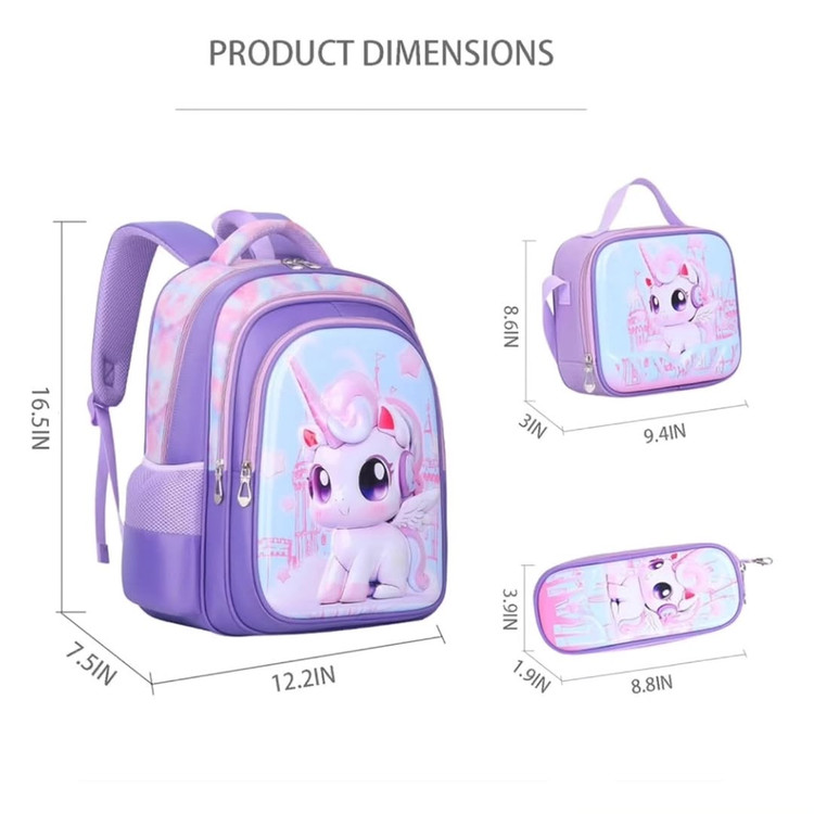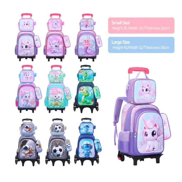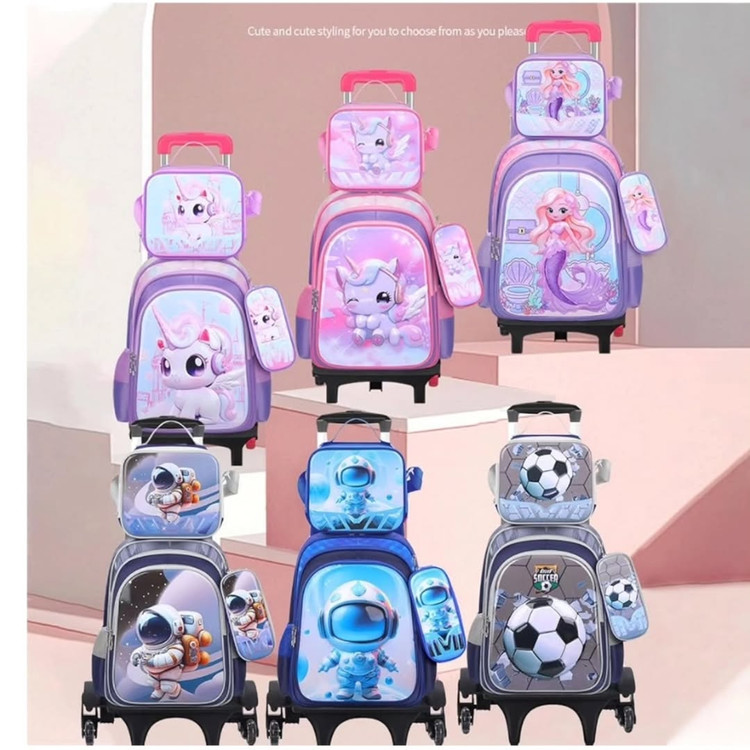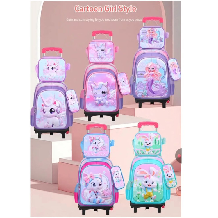 ست سه تکه کوله مدرسه پونی چرخدار / بدون چرخ