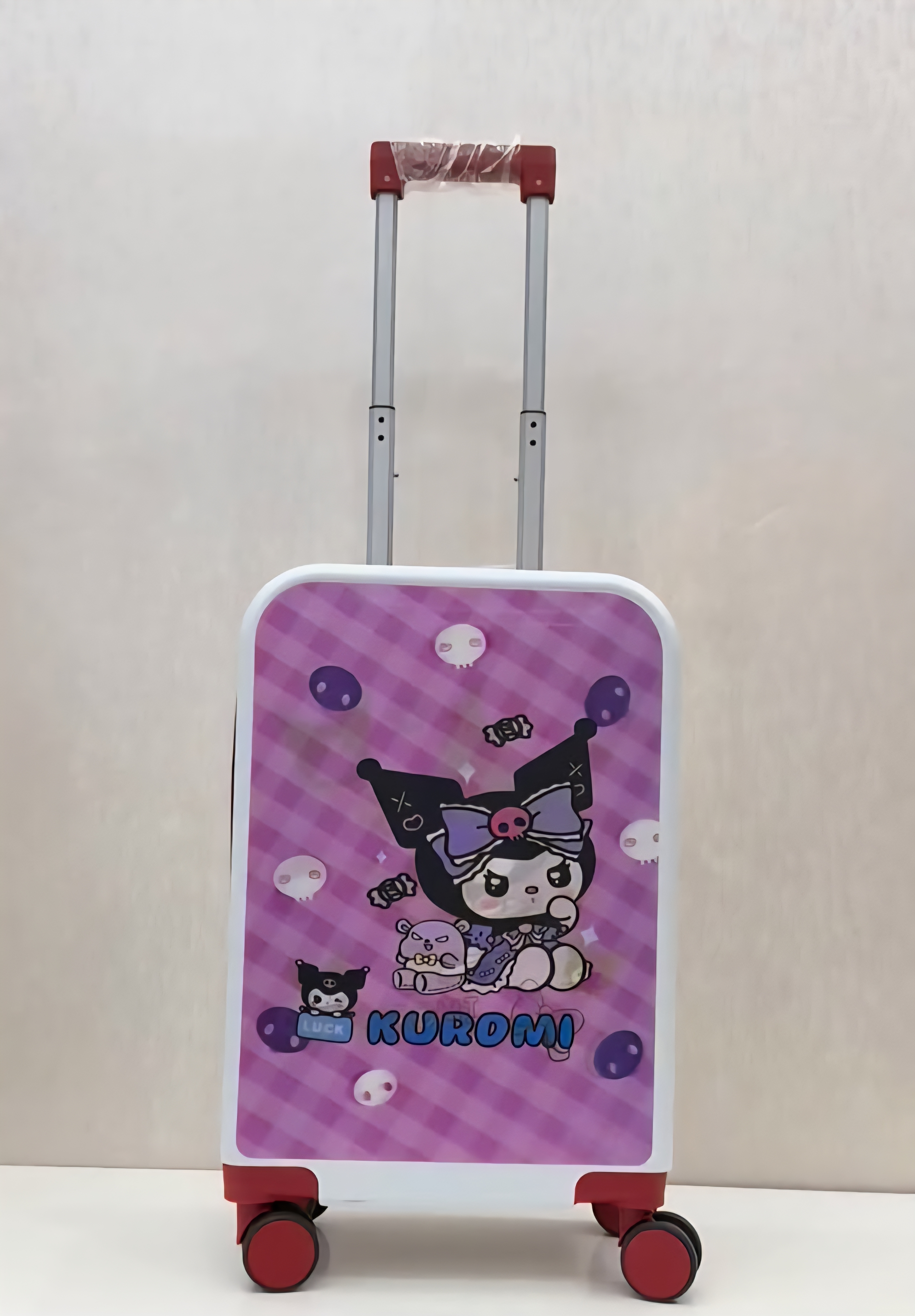چمدان بچگانه کرومی طرح سه بعدی سایز ۲۰ ارتفاع ۵۰ سایز ۱۸ ارتفاع ۴۵ جنس نشکن دسته تلسکوپی چرخ روان ۳۶۰ درجه قفل رمز دار ضد آب قابل شستشو
