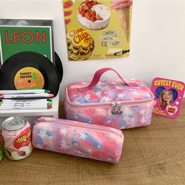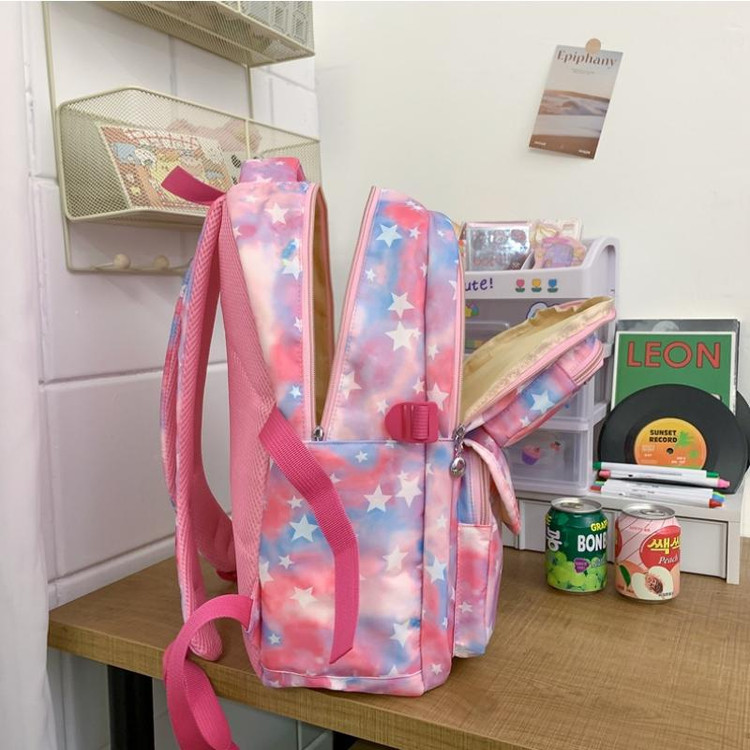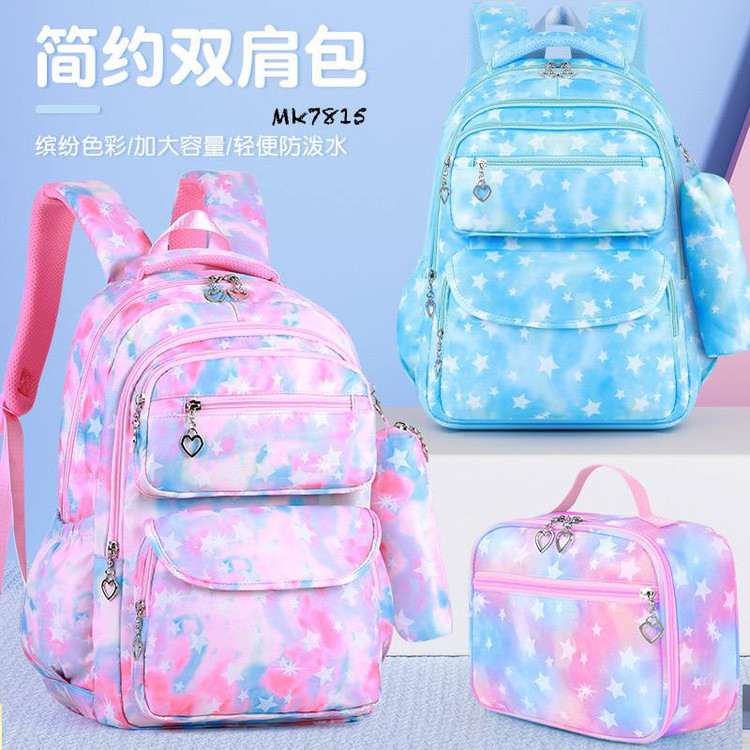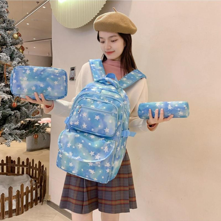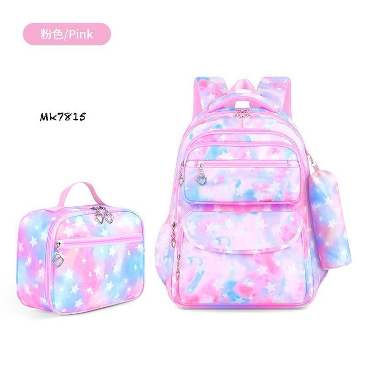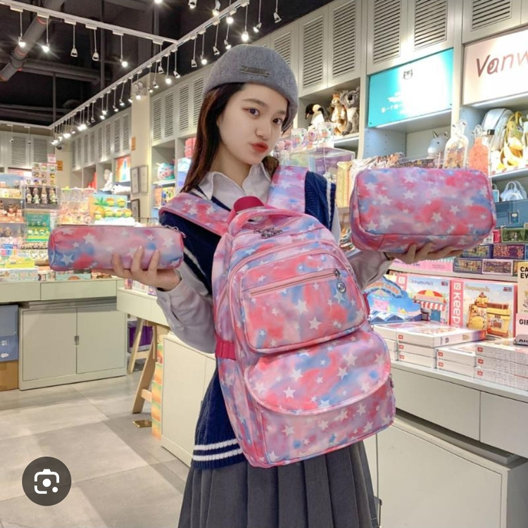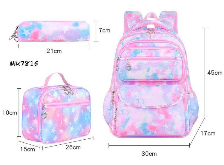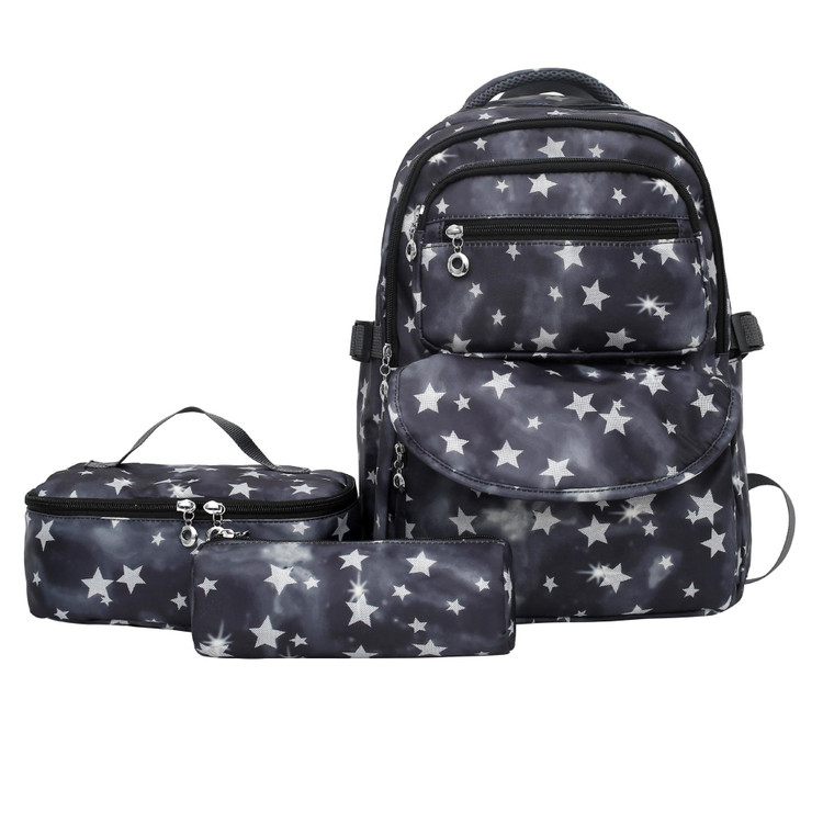 ست سه تکه کوله پشتی آبرنگی ستاره ای شامل کوله و جامدادی و کیف غذا