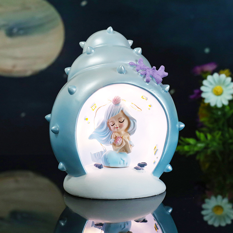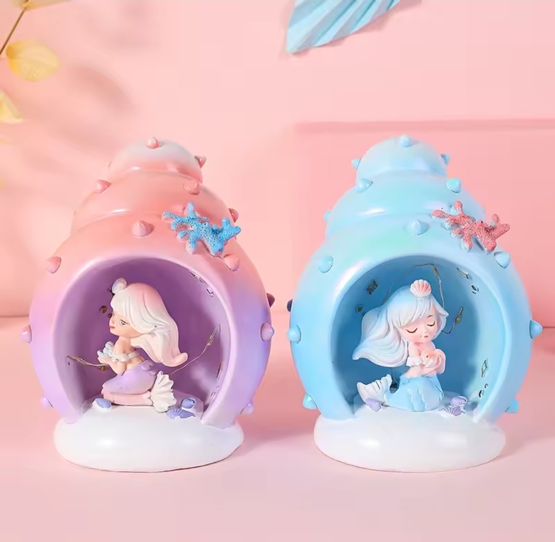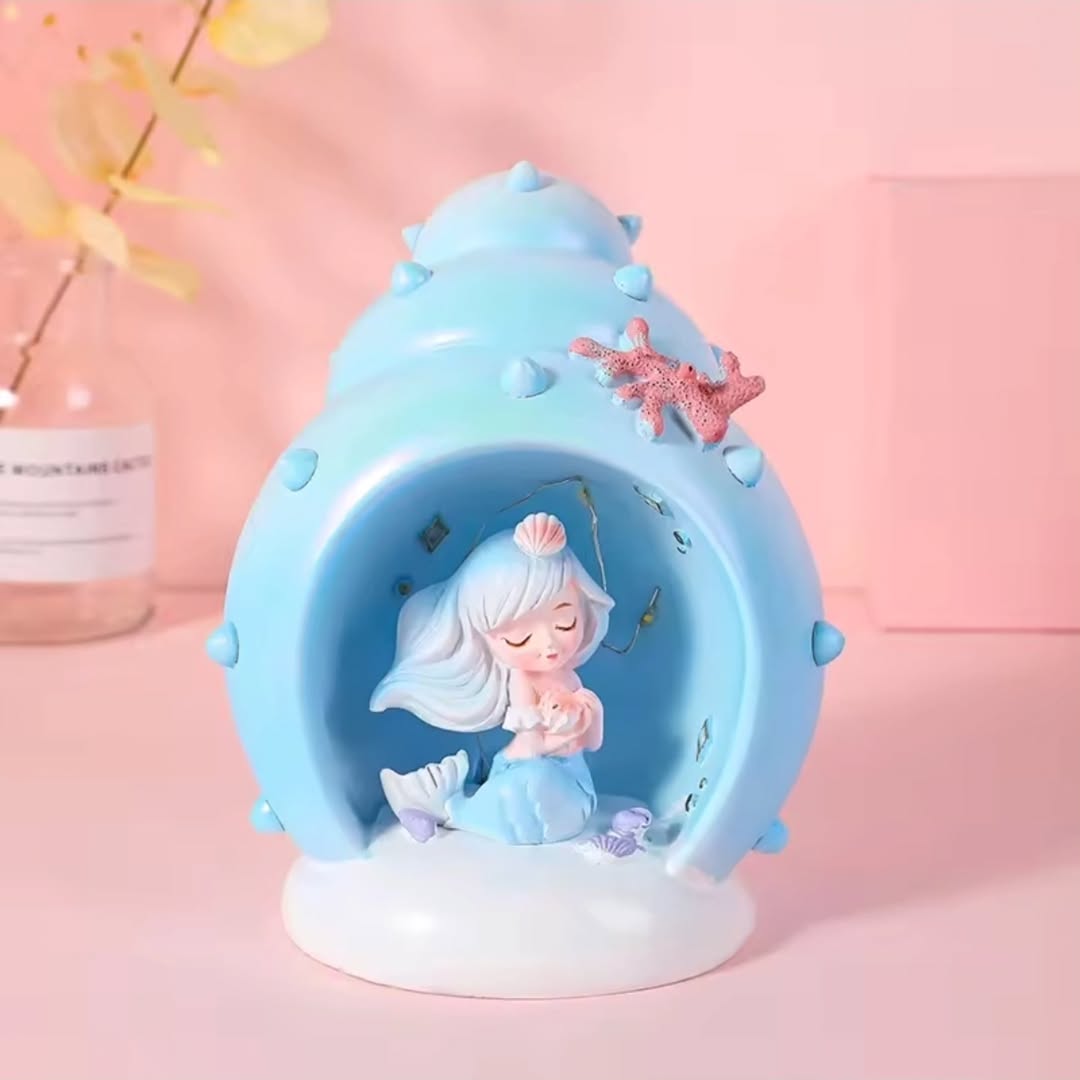 چراغ خواب صدفی پری دریایی دو رنگ صورتی و آبی با طراحی پری دریایی مناسب برای اتاق خواب کودکان باتری خور ابعاد ۱۰ در ۱۵